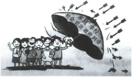 2.B 解析本题考查对未成年人的特殊保护等相关知识。解答漫画类选择题,既要审视漫画的寓意,更要理解图中文字蕴含的相关信息。由漫画中的未成年人和“家庭、学校、社会、司法、政府、网络”等文字信息可以推送出,图片所反应的法律是《中华人民共和国未成年人保护法》。故本题选B。