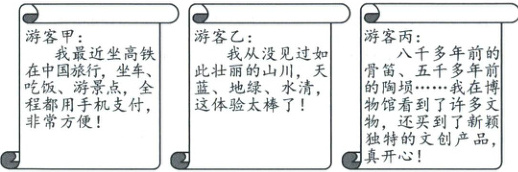 (1)结合国外游客的分享,联系道德与法治课程内容,参考示例简要说明新时代的中国是怎样的中国。(4分。写出两条即可)