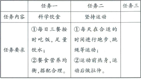 (1)(4分)示例 任务内容:规律作息 任务要求: