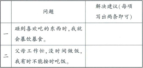(2) 任务单发放后,部分同学提出了自己在落实科学饮食任务要求时会遇到的问题。为帮助同学们解决问题,请你完善下列建议单。(4分)