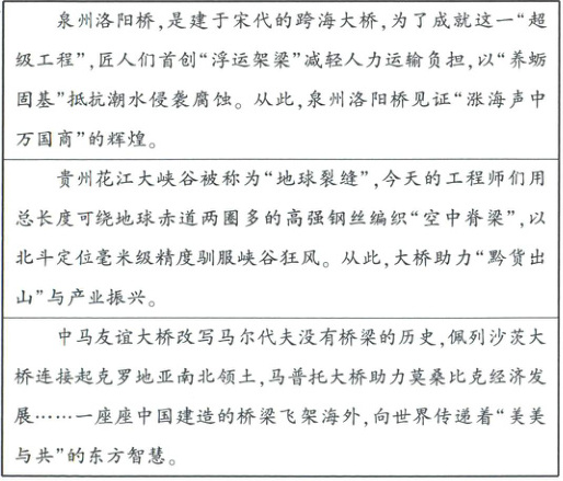 从石板小桥流水潺潺,到钢铁长虹横卧云空,再到友谊的桥梁连接人心,站在一座座“桥”上,我们可以看到(