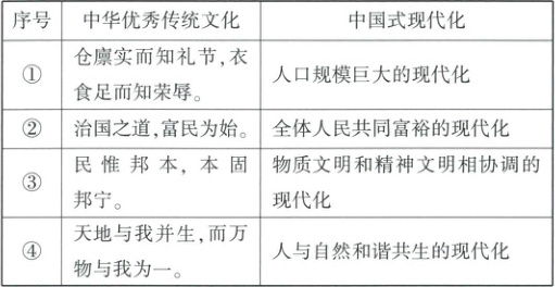 8. “中国式现代化”之所以被冠以“中国”二字,在于其为中华文明所滋养。下列与之相对应正确的是 (