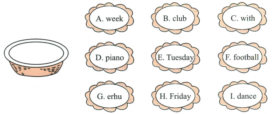 三、1.Thursday 2.Chinese 3.music 4.Monday 5.piano
