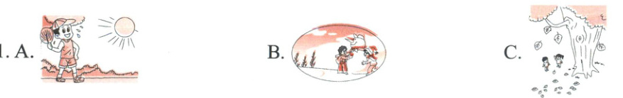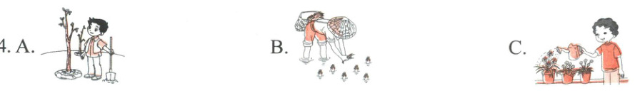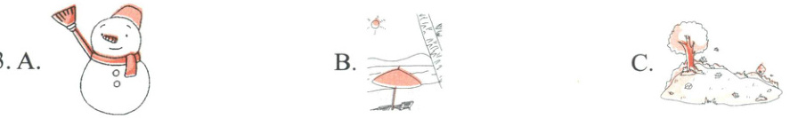 一、学校正在进行“美丽四季”绘画展。听录音,选出与所听内容相符的图片。
