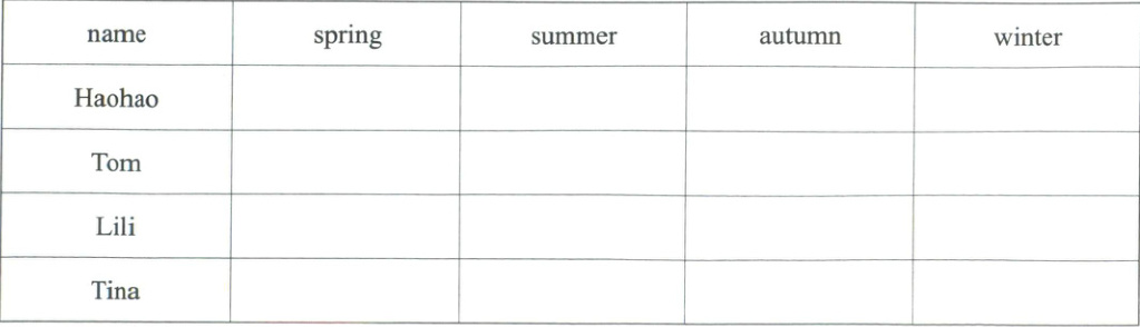 三、昊昊和朋友们在谈论季节。听录音,在对应的表格中打“√”。