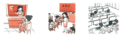 ) 2. We draw pictures in art class.A. shirt B. dress C. sing