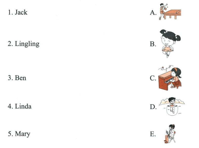 四、孩子们有各自的爱好,你知道他们都喜欢什么吗?听录音,连线。
