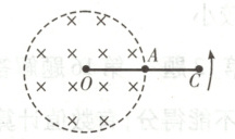 解题思路 由法拉第电磁感应定律可知,OA段导体棒切割磁感线产生感应电动势,OA段导体棒相当于电源,且O为正极,A为负极,故$\varphi_{o}>\varphi_{A}$;由于AC段导体棒在磁场外,且导体棒OC不构成回路,故$\varphi_{A}=\varphi_{C}$。综上可知,A正确,B、C、D错误。