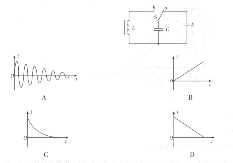 5. 如图所示,将开关S由a拨到b,使电容器C与线圈L构成回路。以电容器C开始放电取作0时刻,能正确反映电路中电流i随时间t变化关系的图像是 (