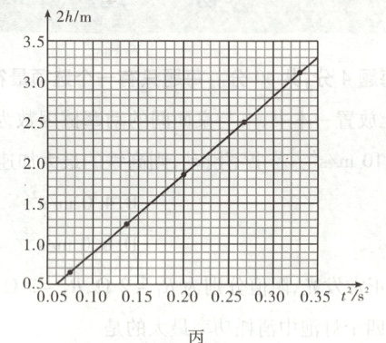(3)作出2h-t²图线,如图丙所示,则可得到重力加速度g=