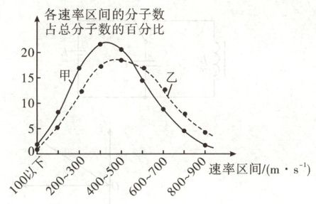 8. 一定质量的理想气体,体积保持不变。在甲、乙两个状态下,该气体分子速率分布图像如图所示。与状态甲相比,该气体在状态乙时 (