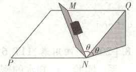 6. [2025·山东卷,8T,3分] 工人在河堤的硬质坡面上固定一垂直坡面的挡板,向坡底运送长方体建筑材料。如图所示,坡面与水平面夹角为$\theta$,交线为$PN$,坡面内$QN$与$PN$垂直,挡板平面与坡面的交线为$MN$,$\angle MNQ = \theta$。若建筑材料与坡面、挡板间的动摩擦因数均为$\mu$,重力加速度大小为$g$,则建筑材料沿$MN$向下匀加速滑行的加速度大小为 (
