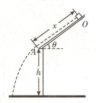 7. [2025·辽宁卷,13T,10分] 如图,一雪块从倾角$\theta = 37°$的屋顶上的$O$点由静止开始下滑,滑到$A$点后离开屋顶。$O$、$A$间距离$x = 2.5 m$,$A$点距地面的高度$h = 1.95 m$,雪块与屋顶的动摩擦因数$\mu = 0.125$。不计空气阻力,雪块质量不变,取$\sin 37° = 0.6$,重力加速度大小$g = 10 m/s^2$。求: