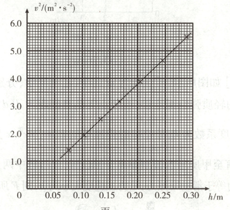 (3)根据$mgh = \frac{1}{2}mv^{2}$,整理可得$v^{2} = 2gh$,可知理论上,若机械能守恒,题图丙中直线应通过原点,且斜率$k = 2g$。由题图丙可得直线的斜率$k = \frac{5.60 - 1.50}{0.295 - 0.080} m/s^{2} \approx 19.1 m/s^{2}$。