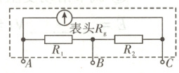 2. [2025·北京卷,15(3)T,2分] 某电流表出现故障,其内部电路如图所示。用多用电表的欧姆挡检测故障,两表笔接 A、B 时表头$R_g$指针不偏转,接 A、C 和 B、C 时表头$R_g$指针都偏转。出现故障的原因是