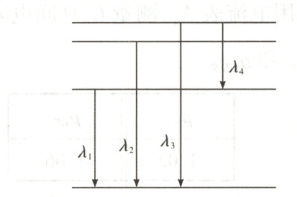 5. 在某原子发生的跃迁中,辐射如图所示的4种光子,其中只有一种光子可使某金属发生光电效应,则是