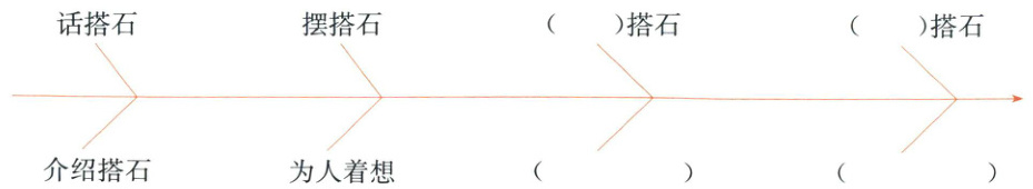 走 让 协调有序 无私奉献 【解析】本题考查整体感知课文内容的能力。认真回忆课文内容,可以知道作者主要写了摆搭石、走搭石、让搭石这几个画面。其中通过对摆搭石的描写,我们感受到了乡亲们为人着想的品质;通过对走搭石画面的描写,我们感受到了乡亲们走搭石动作的协调有序;通过对让搭石画面的描写,我们感受到了乡亲们无私奉献的精神。