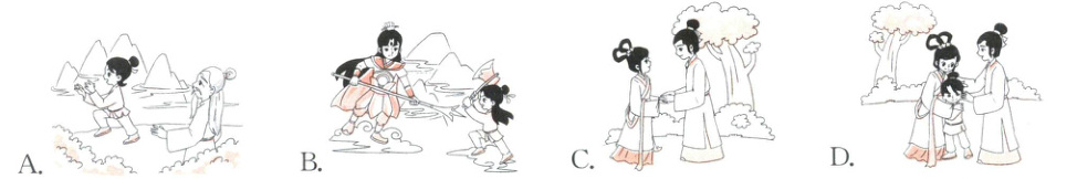 1. B D 【解析】本题考查故事情节。选项A的画面内容是沉香拜师学艺;选项B的画面内容是沉香与二郎神打斗;选项C的画面内容是三圣母与刘彦昌相识、相恋;选项D的画面内容是沉香全家团聚。结合选文两个自然段的内容可以确定答案是B和D。 2.B
