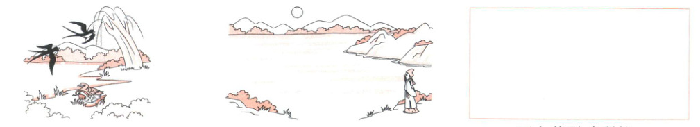 七 “诗是无形画,画是有形诗”,五年级(1)班的同学准备绘制一面以诗歌欣赏为主题的班级文化墙,请你也参与进来,为画配诗文,为诗歌绘图画。