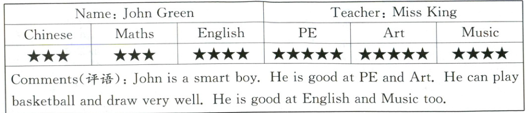 八 新语篇 成绩单 阅读成绩单,判断下列句子正(T)误(F)。(10分)