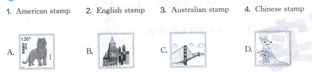 二 实验班原创 文化意识 将国家与其对应的邮票连线。(4分)