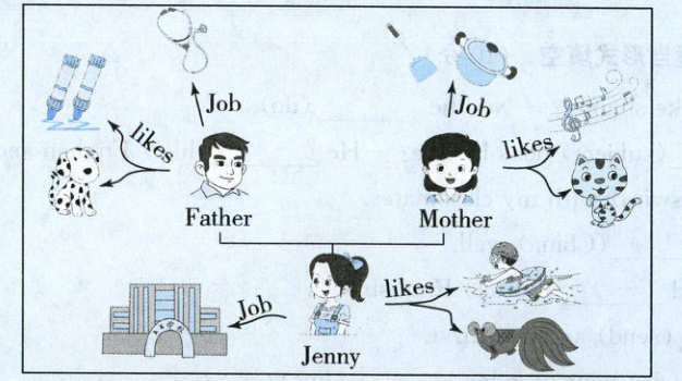 From this picture, we can know something about Jenny's family. What do they do? What do they like doing? What animal friends do they have?