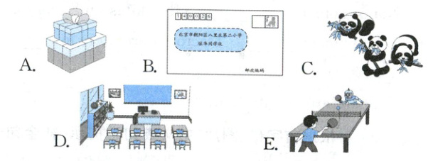 二 为下列句子或对话选择合适的图片。(5分)