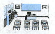 1.eight 2.chairs 3.pictures 4.beside