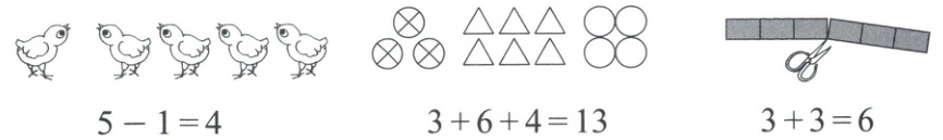 )。①一共有多少只小鸡? $5 - 1 = 4$