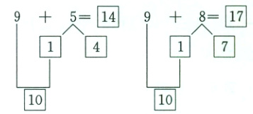 1. 9 + 5 = 14 9 + 8 = 17