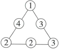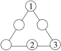 最上面填1,左边中间填4,右边中间填3,最下面左边填2。