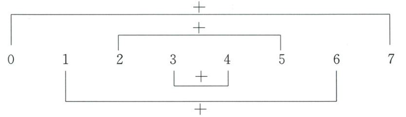 思路分析 先把 0,1,2,3,4,5,6,7 这 8 个数按从小到大的顺序排列,再依次首尾相加。如下图所示: