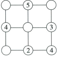 8. 在$◯$里填上合适的数,使每一横行、每一竖行上的三个数相加都等于8。