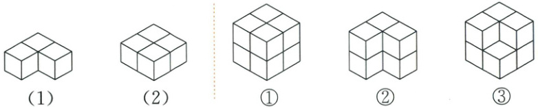 (2)可看作有下面一层4个,上面一层2个,共6个小正方体,加上图形