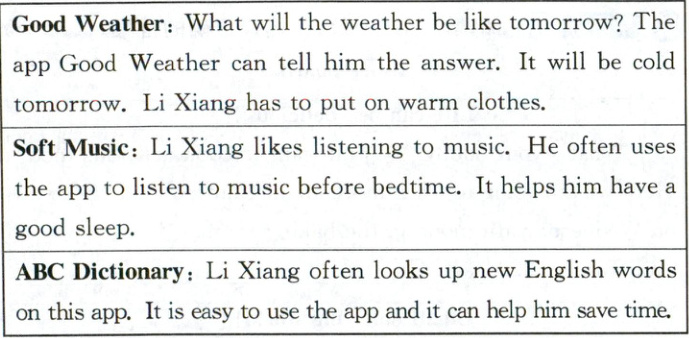 Apps on the mobile phones are very useful. They can help us a lot. Here are some apps on Li Xiang's mobile phone.