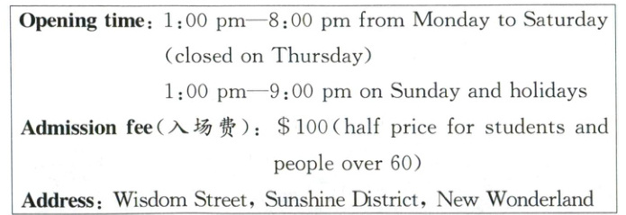 In the New Wonderland Science Museum, you can try some fun activities and learn some interesting things about science. For example, you can try to build little houses with different things like wood, stones and grass. You can also try to walk in the air with a rope(绳子)tied(系)to your body. You can take photos in the museum, but you cannot use a flash(闪光灯). You can eat and drink in the museum, but you cannot run around and make loud noise.
