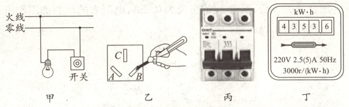 C.图丙中空气开关跳闸的原因可能是家庭电路出现了短路