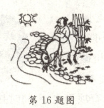 16. 如图所示是明代著名画家吴伟的饮驴图,《题老人饮驴图》中有两句诗“岸上蹄踏蹄,水中嘴对嘴”。其中“蹄踏蹄”的情境是因为光沿直线传播形成的