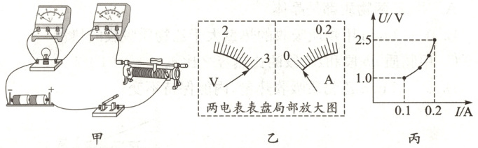 (2)闭合开关,小方发现两表指针处于图乙所示位置,此时小灯泡