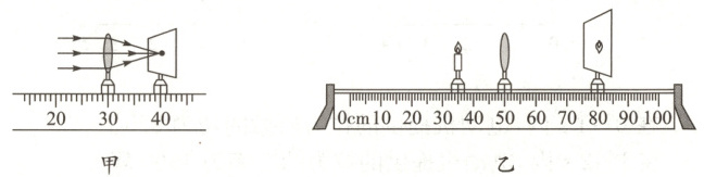 D.图乙中若用黑纸片将凸透镜挡一半,光屏上成半个烛焰的像