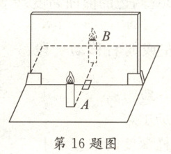 16.便于确定像的位置 不变 解析:实验采用透明薄玻璃板代替平面镜,玻璃板是透明的,观察到蜡烛A的像的同时,也能观察到蜡烛B,当蜡烛B和蜡烛A的像重合时,蜡烛B的位置便是蜡烛A的像的位置,便于确定像的位置;平面镜成的像与物大小相同,和物到镜的距离无关,所以将蜡烛A远离平面镜时,像的大小将不变。