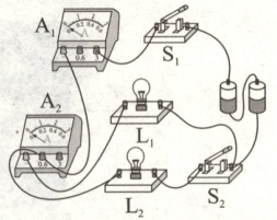 )A.只闭合$S_1$时,只有$L_2$发光,流过电流表$A_1$、$A_2$的电流大小相等