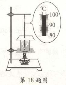 18. 在“观察水的沸腾”实验中,当观察到水中有大量气泡产生时,温度计示数如图,且保持不变,此时水的沸点是