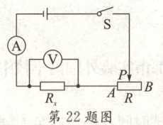 22. 小明利用如图所示的电路测量未知电阻$R_x$,实验时,他移动滑动变阻器的滑片,多次测量求$R_x$的目的是为了
