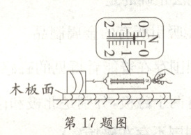 17. 同学们利用如图所示装置探究滑动摩擦力大小与哪些因素有关,实验过程中要求水平匀速直线拉动木块,图中木块所受滑动摩擦力大小为