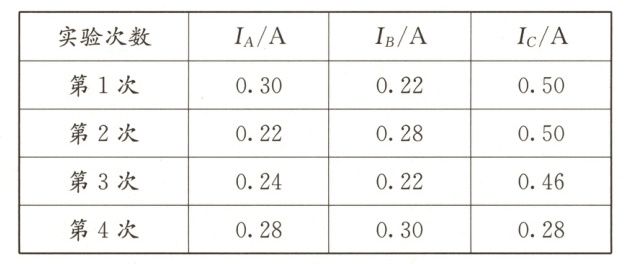 (2)A所有示数没有超过0.6A,故应选择小量程来提高数据的精确度,故A合理;B第4次实验$I_{c}$的电流与两个支路的电流之和差距过大,不在误差允许范围内,故B不合理;C此实验还可以继续换不同规格的小灯泡,或者换电源电压进行实验,测量更多数据,故C合理;D本实验为探究实验,多次实验的目的是避免实验结论出现偶然性,故D合理。故选B。