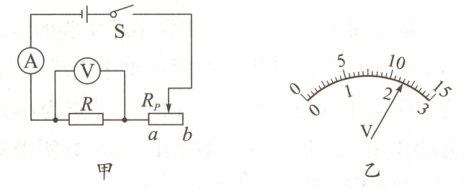9. 小明利用如图甲所示的电路来测量$R$的阻值,电源电压为$3\ V$,$R$的阻值约为$10\ \Omega$,闭合开关后,电压表指针的位置如图乙所示。对于该实验,下列说法正确的是 (