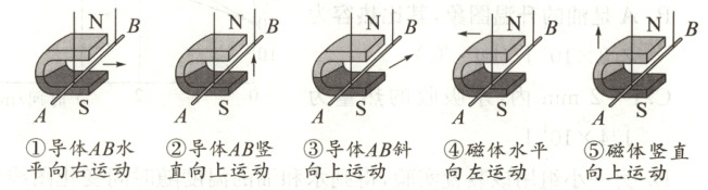 (2)小明进行了如图所示的5次操作,其中能产生感应电流的是(选填所有符合要求的操作序号)。