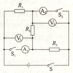 D.当开关S闭合,$S_1$、$S_2$断开时,电压表$V_1$和$V_2$的示数之比为4∶3