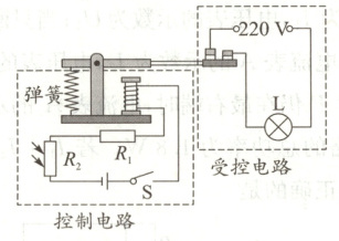 2. 如图所示是一款 “智能照明灯” 的电路, 其控制电路中, 电源电压恒定, R₁为可变电阻, R₂为光敏电阻, 其阻值随光照强度变化而变化。当电流到达某一值时, 会将衔铁吸下。灯L天黑时自动发光, 天亮时自动熄灭。关于该灯, 下列说法正确的是 ()